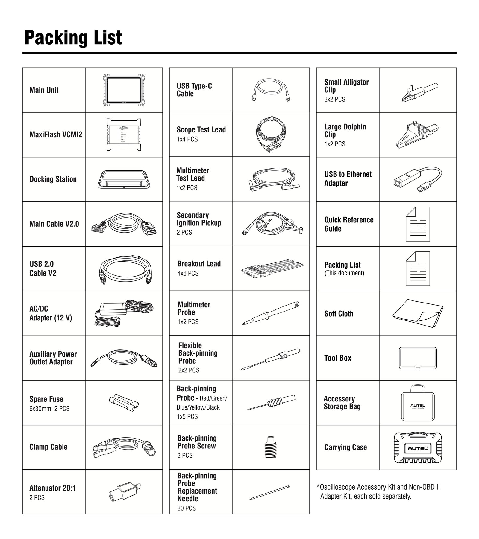 ملحقات جهاز التشخيص المتقدم Autel Maxisys ULTRA S2:
