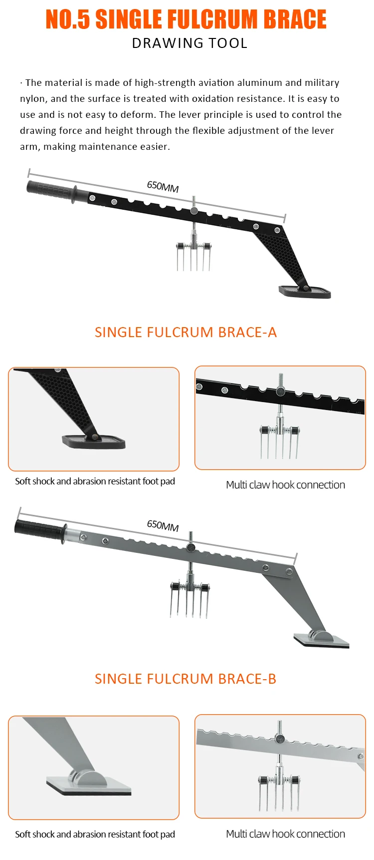 | Single Arm Lever | Equipped with a convenient arm lever to raise or lower the dent pull bar kit, saving time and effort during sheet metal repairs. |